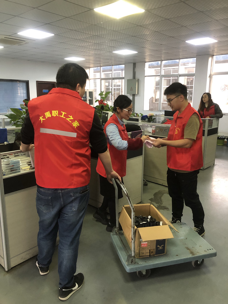 大禹電子工會3月1日正式成立,工會愛心大使們給大家派發紀念禮物,感謝領導和大禹家人的信任和支持!
